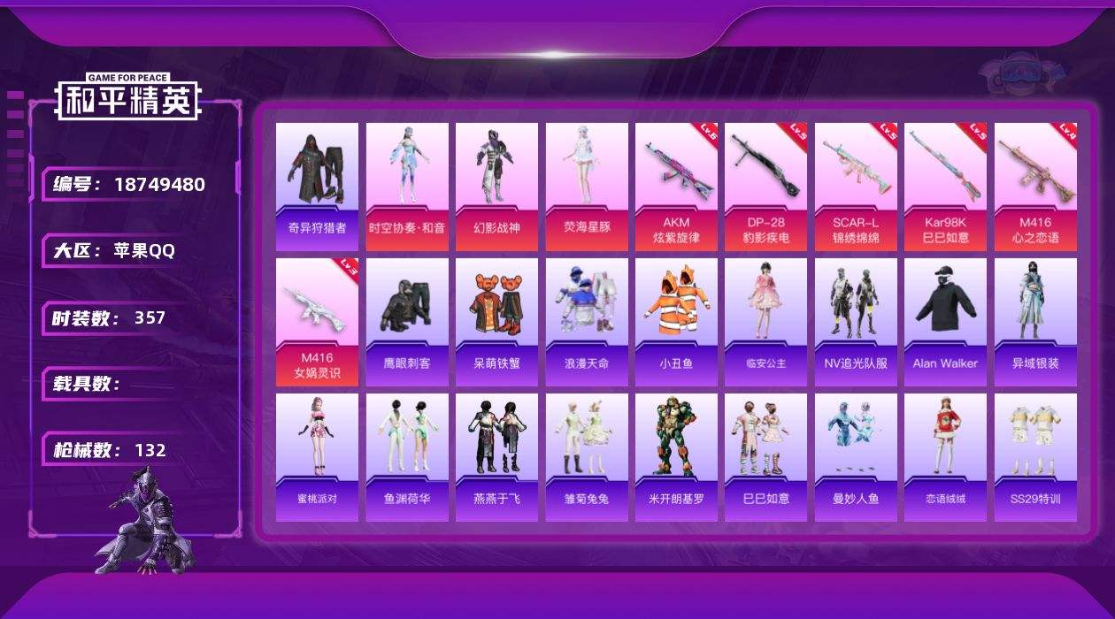 【680561】【不可二次】【苹果QQ】S686-奇异狩猎者 漫步者 奇异狩猎者 M24-奇异狩猎者 M762-奇异狩猎者 SCAR-L-锦绣绵绵 AKM-炫紫旋律 M416-心之恋语 AKM-缤纷海域 幻影战神 M416-黄金龙骨 浪漫天命 AWM-黄金龙骨