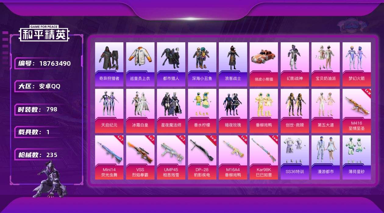 【682014】【可二次】【安卓QQ】龟仙人 迅捷狂鲨 奇异狩猎者 潮萌小黄鸭 浪客战士 天启纪元 狂沙舞者 豚鼠丹丹 俏皮小熊猫 巡查衣 香水柠檬 梦幻火箭 暗夜玫瑰 UMP45-相思残雪 深海小丑鱼 宝贝奶油派 幻影战神 Mini14-荧光虫舞 激萌小黄鸭 冰霜白皇