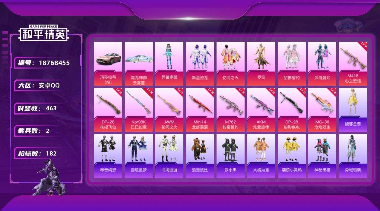 【682377】【不可二次】【安卓QQ】M762-甜蜜誓约 大橘为重 花间之火 粉甜马卡龙 新星烈龙 机械英豪 极速红龙 甜蜜誓约飞行器 罗小黑 Mini14-龙虾霸霸 软嫩糖心蛋 M416-心之恋语 浪漫波比 激萌小黄鸭 纯白誓言 深海曼妙 暗夜契约 潮萌小黄鸭 黑色刀锋 AKM-炫紫旋律 M762甜蜜誓言 白月香洋装 DP-28-扶摇飞仙 AWM-花间之火 玛莎拉蒂粉色 甜蜜誓约 风华少年志