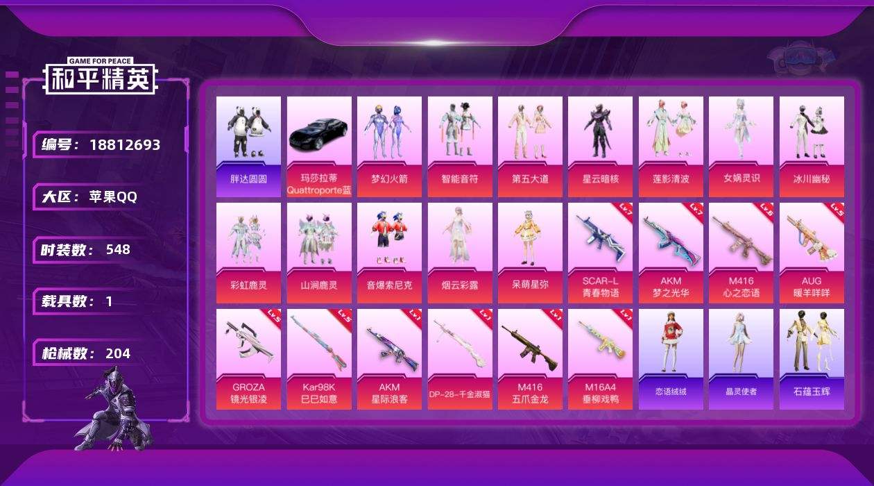 【687395】【不可二次】【苹果QQ】龟仙人 M16A4-垂柳戏鸭 S686-奇异狩猎者 AKM-星际浪客 M416-五爪金龙 M762-瑞龙福将 彩虹鹿灵 音爆索尼克 梦起落英 冰川粉黛飞行器 梦幻火箭 AKM-梦之光华 MK47-林间仙鹿 GROZA-林间仙鹿 M416-心之恋语 粉红小猪 山涧鹿灵 瑞龙福将 智能音符 醒狮腾龙 SCAR-L-青春物语 胖达圆圆 团圆交子