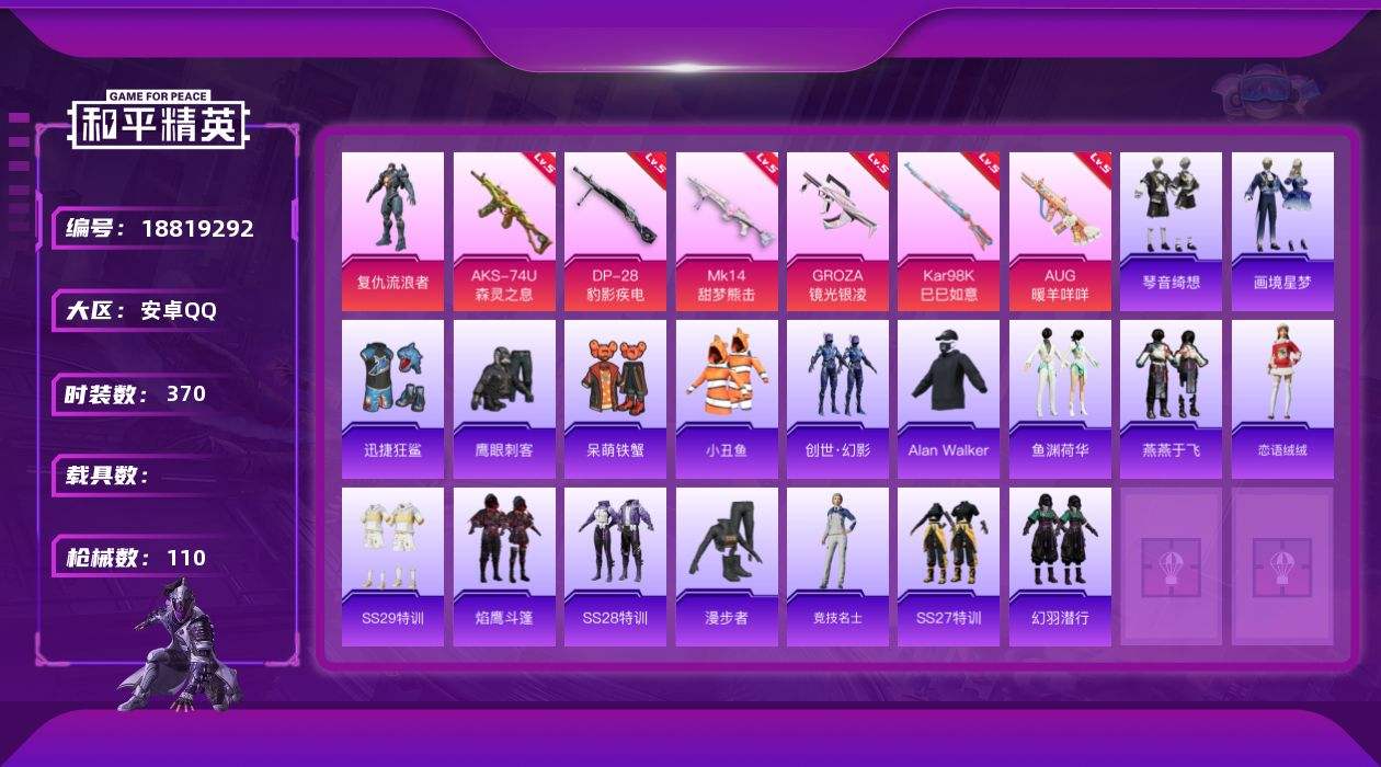游戏区服:和平精英 / 安卓系统 / QQ账号