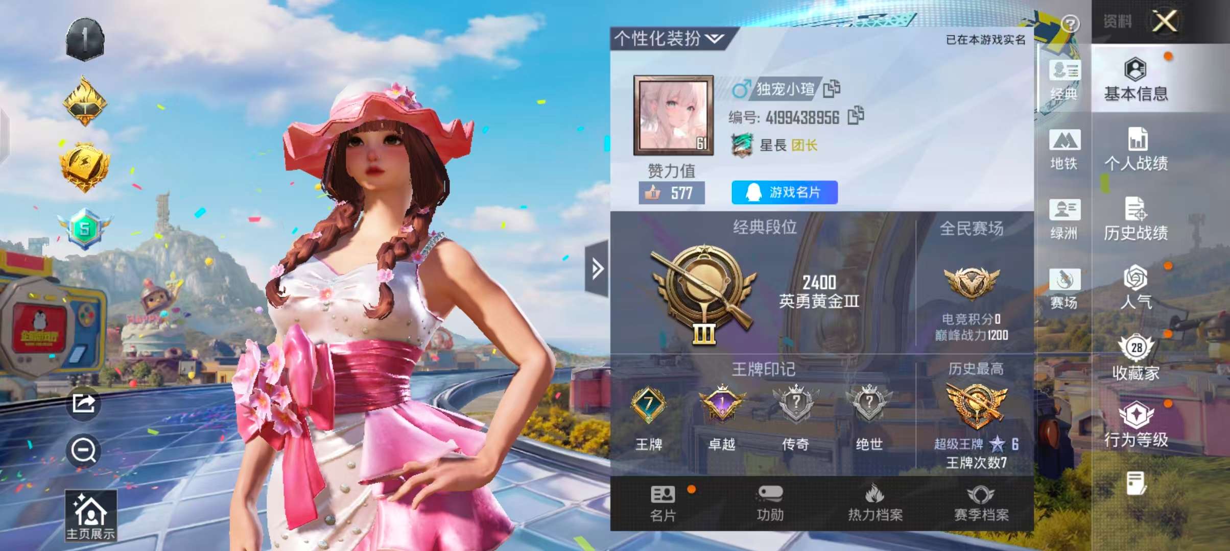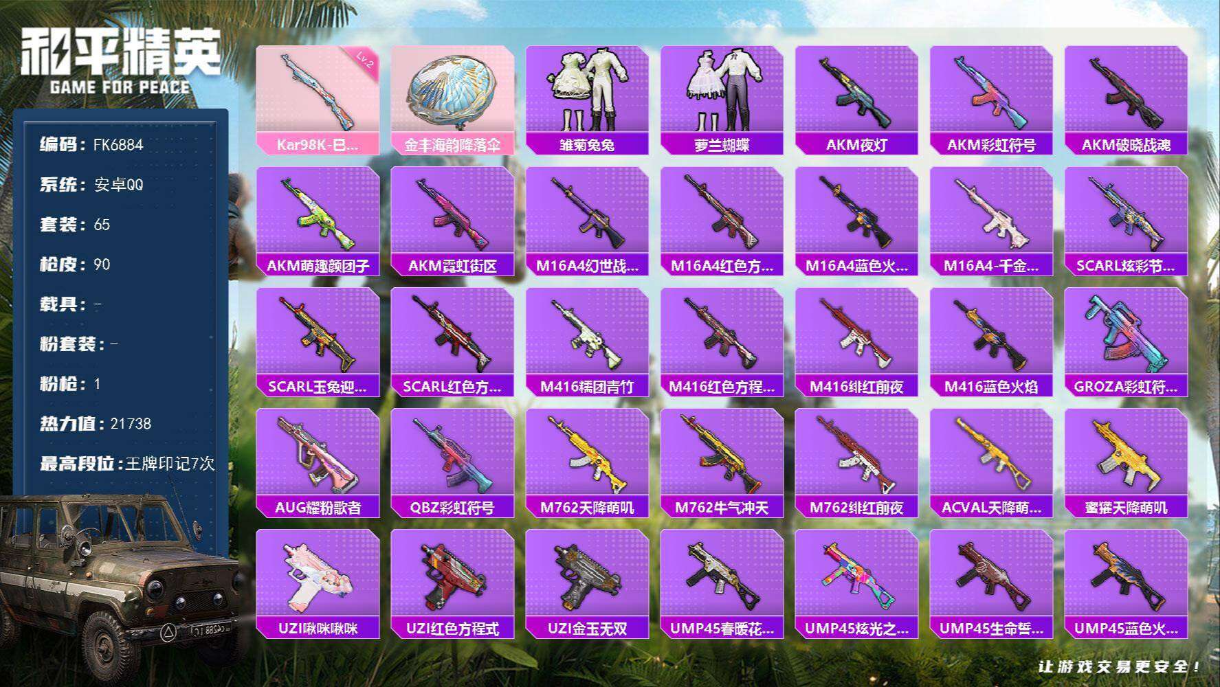 游戏区服:和平精英 / 安卓系统 / QQ账号