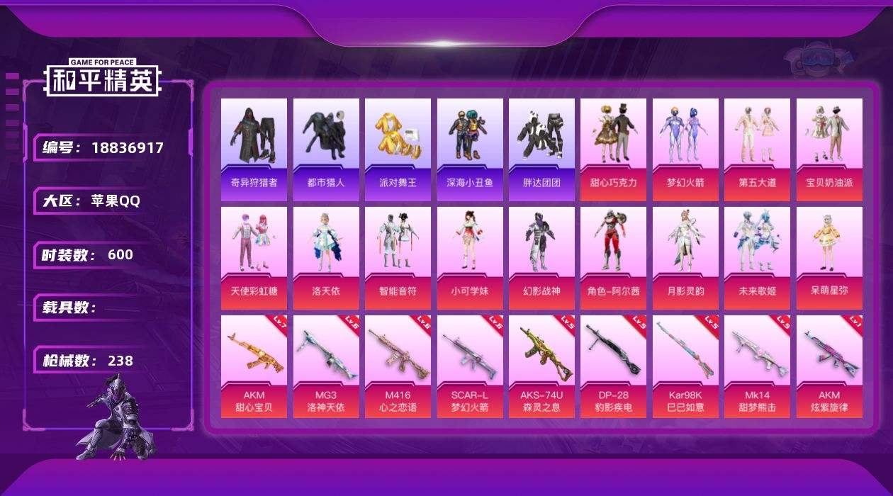 【690496】【可二次】【苹果QQ】龟仙人 漫步者 都市猎人 洛天依 炎氏战神飞行翼 忍者信条 M416-心之恋语 深海小丑鱼 智能音符 浪漫天命 梦幻火箭飞行器 AWM-黄金龙骨 AKM-甜心宝贝 胖达团团 SCAR-L-梦幻火箭 迅捷狂鲨 奇异狩猎者 SCAR-L梦幻火箭 MG3-洛神天依 甜心巧克力 AKM-炫紫旋律 梦幻火箭 幻海精灵飞行器 AKM-缤纷海域 天使彩虹糖 白勺歌姬飞行器