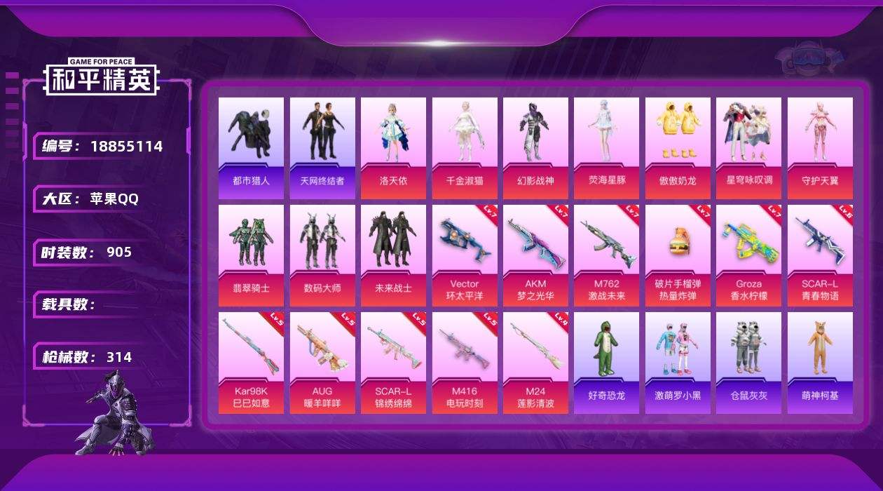 【693460】【不可二次】【苹果QQ】水银刺客 M24-莲影清波 漫步者 都市猎人 M249-古堡领主 洛天依 翡翠骑士 豚鼠丹丹 忍者信条 M762-奇异狩猎者 M416-电玩时刻 仓鼠灰灰 GROZA-林间仙鹿 M24-香水柠檬 瑞龙福将 浪漫天命 梦幻火箭飞行器 激萌罗小黑 团圆交子 M762-激战未来 萌神柯基 M762-瑞龙福将 海洋之心 Vector-环太平洋 狂沙舞者 金羽特工