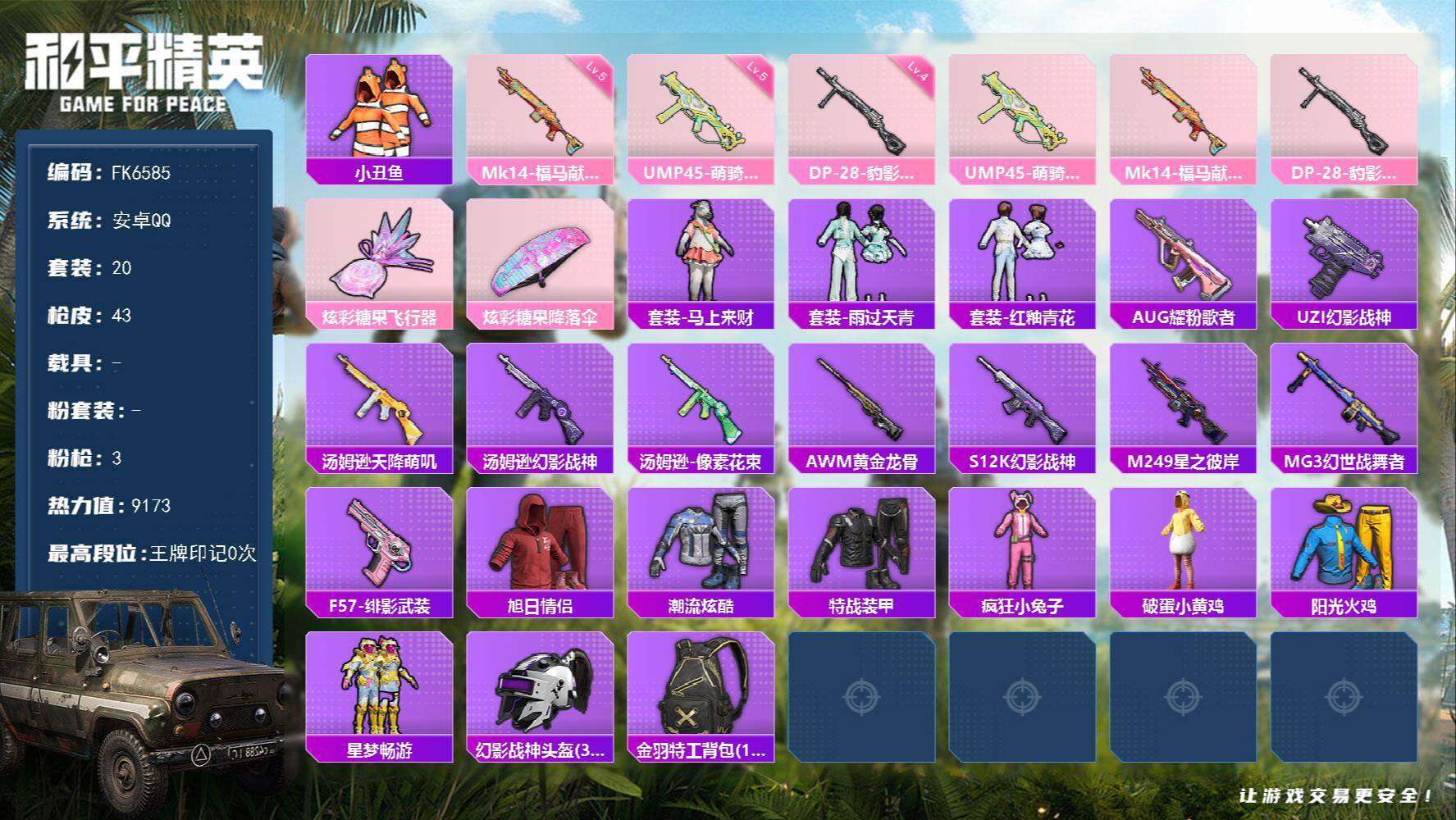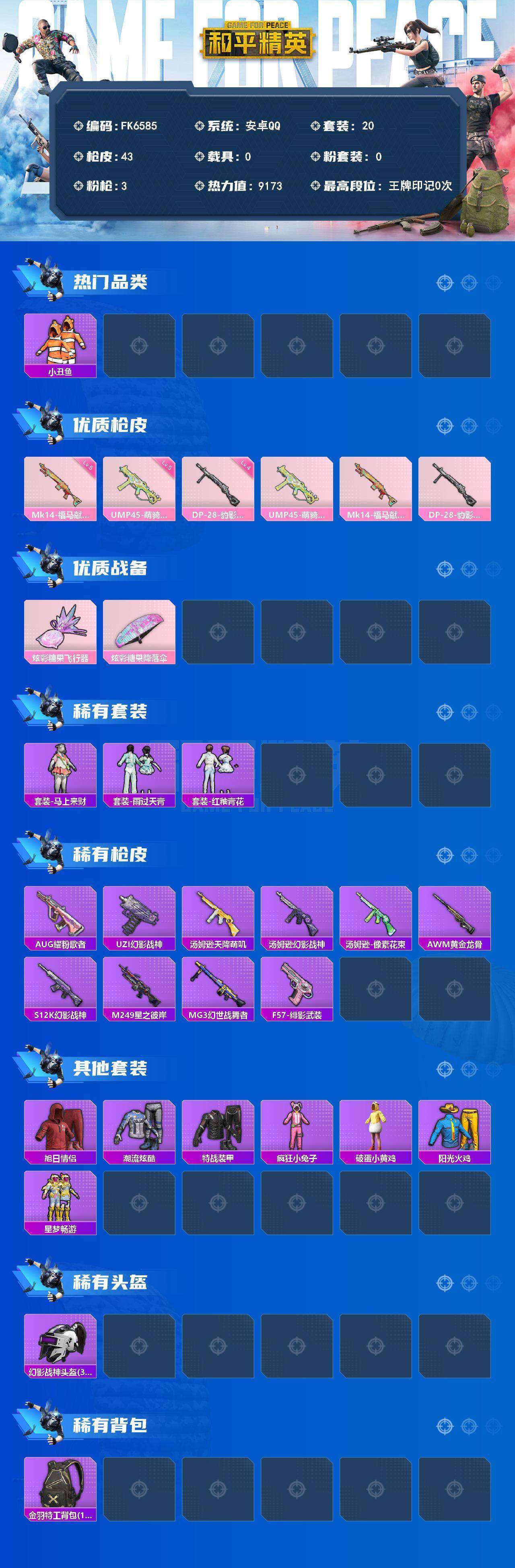 游戏区服:和平精英 / 安卓系统 / QQ账号
